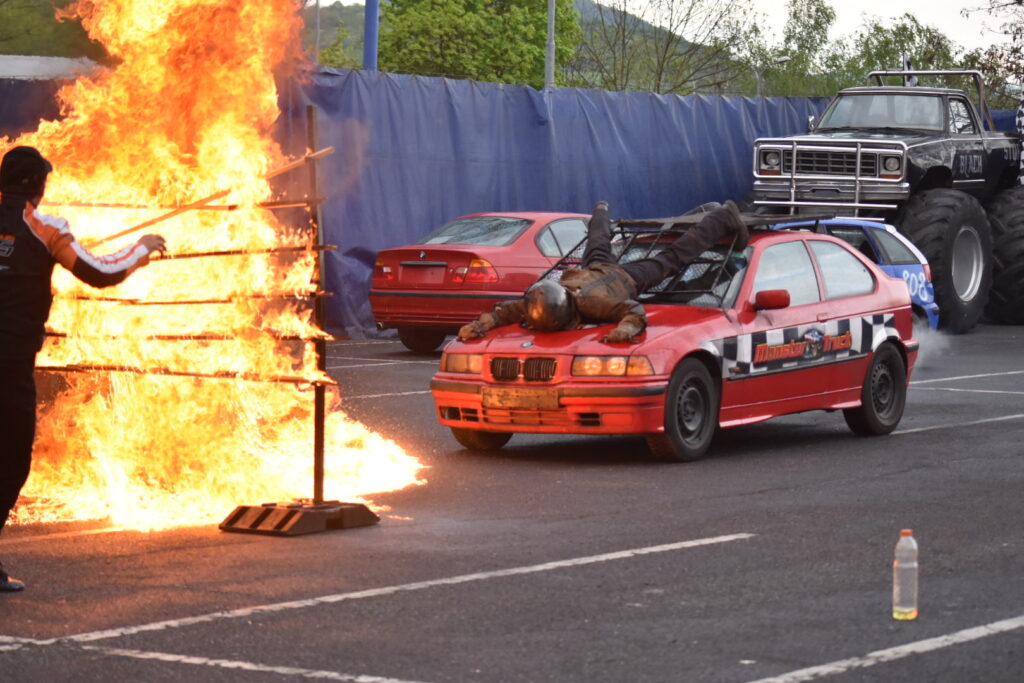 Těšit se můžete nejen na legendární monster trucky, ale také na dechberoucí kaskadérské show – rychlé jízdy, průjezdy ohněm nebo jízdu na dvou kolech.