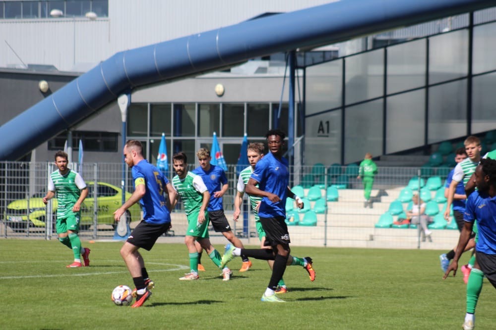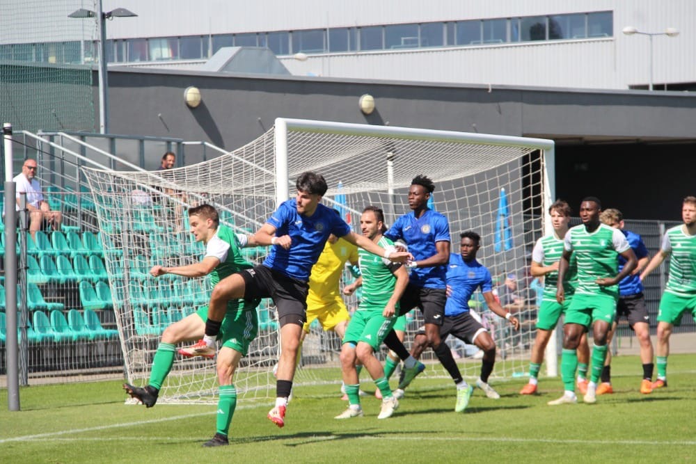 Domácí tým vstoupil do zápasu aktivně a už ve 3. minutě se ujal vedení, když se po přesné akci prosadil M. Hála. Do konce první půle padly dvě žluté karty – po jedné na každé straně – a také došlo ke střídání, když Poku K. vystřídal Hálu ve 28. minutě.