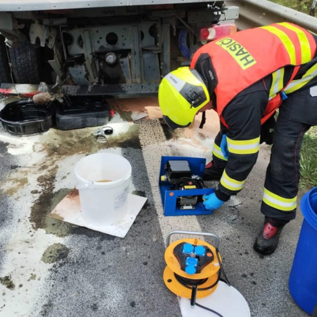 Při kolizi došlo také k úniku přibližně 80 litrů motorové nafty do příkopu u vozovky. Hasiči na místě ihned provedli opatření proti dalšímu šíření látky, zbývající palivo přečerpali a o situaci informovali pracovníky životního prostředí.